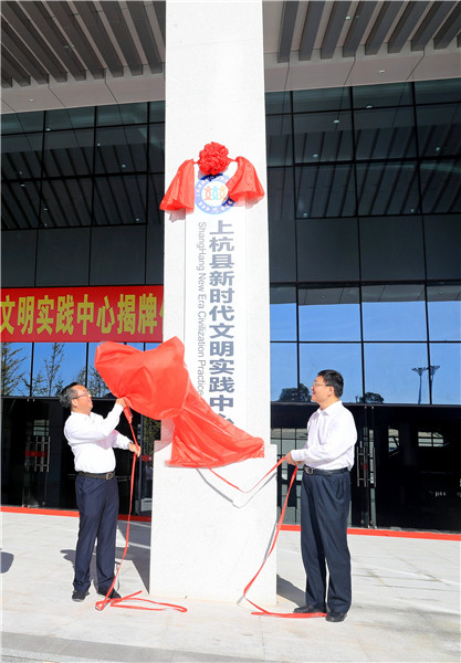 吴向东和傅藏荣共同为上杭县新时代文明实践中心揭牌 郑嘉雯摄