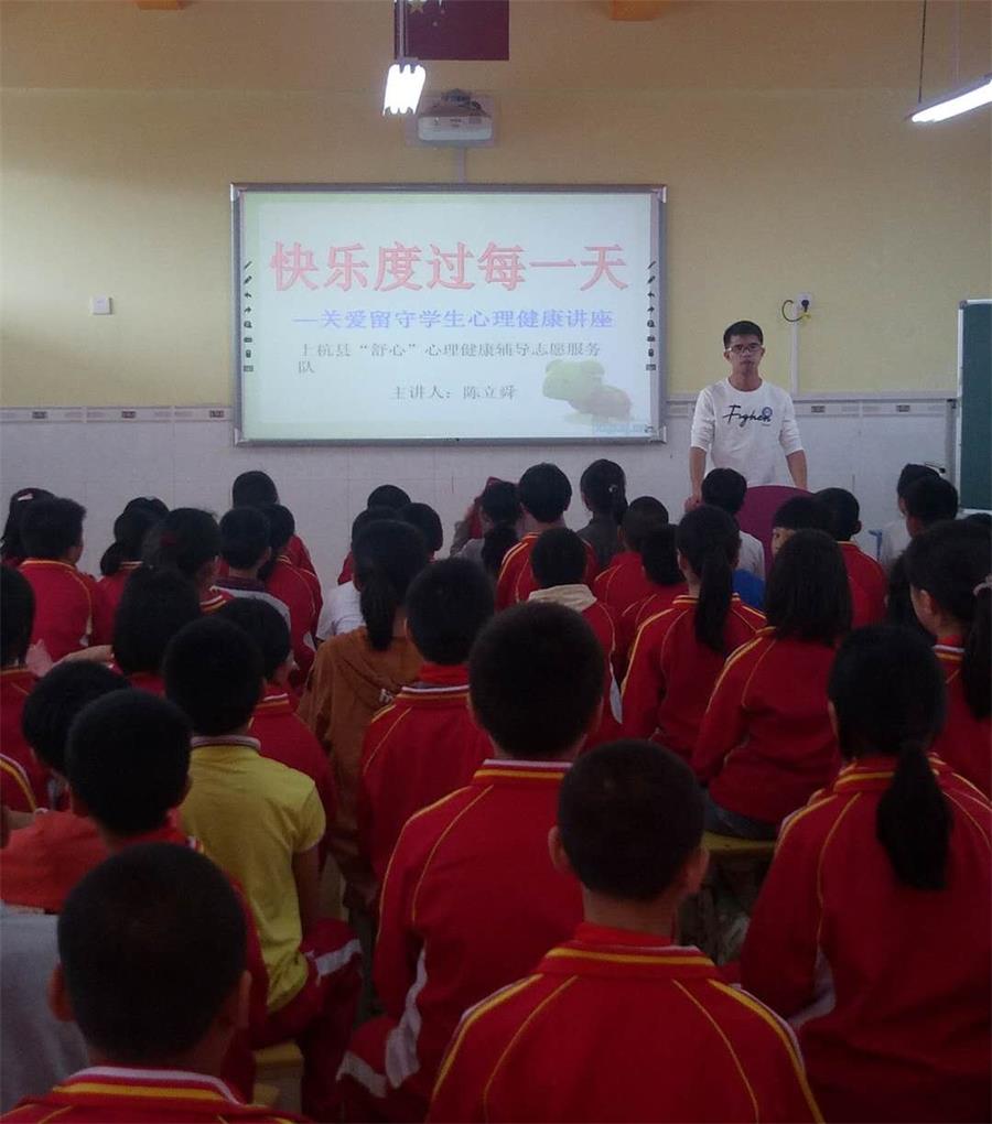? 为疏解留守儿童心理压力,促进留守儿童健康快乐的成长,4月18日上午,由上杭县新时代文明实践中心、上杭县委文明办主办,上杭县未成年人心理辅导中心承办的“守护希望?点亮心窗”未成年人心理健康辅导公益讲座走进上杭南阳红军小学。本次讲座邀请到国家二级心理咨询师、上杭县“舒心”心理健康辅导志愿服务队志愿者陈立舜老师,围绕“快乐度过每一天”主题进行授课,红军小学70余名师生参加了讲座。