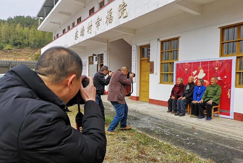? 为金婚夫妇义务摄影 “来,靠近一点,笑一笑,好嘞”随着快门的响声,一张精美的图像定格在幸福的笑脸中……。日前,上杭县“花开沃土”文艺志愿服务队来到上杭县白砂镇东塘村为该村5对金婚夫妇免费摄影纪念照片。为落实习近平总书记在全国文艺工作座谈会上讲话精神,让文艺真正为群众服务,2018年12月,上杭县文联成立“花开沃土”文艺志愿服务队,组织摄影家协会60名志愿服务者,开展“致敬爱情”为金婚夫妇免费摄影公益活动。