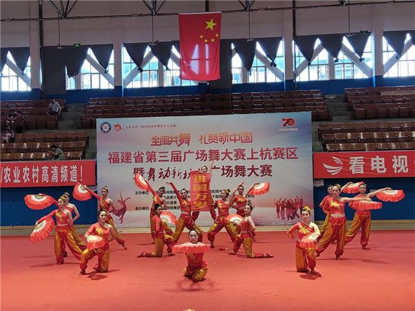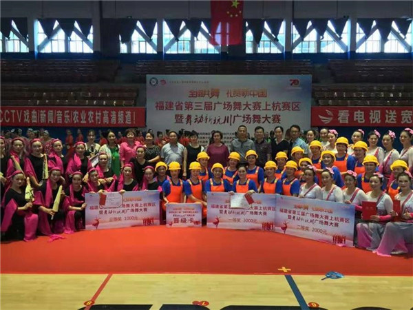 颁奖现场 丁明摄 8月31日,由福建广电网络集团、上杭县新时代文明实践中心、县委文明办、县委老干部局、县文体旅游局、团县委、县妇联、县文联主办,福建广电网络集团上杭分公司、县融媒体中心、县文化馆承办的“全闽共舞 礼赞新中国”福建省第三届广场舞大赛上杭赛区暨舞动新杭川广场舞大赛在城区体育馆举行。福建广电网络集团龙岩分公司党委副书记、总经理易明金,市委文明办副主任傅兰,县委常委、宣传部长张北阳及来自全县21支参赛队伍300多名选手参加活动。