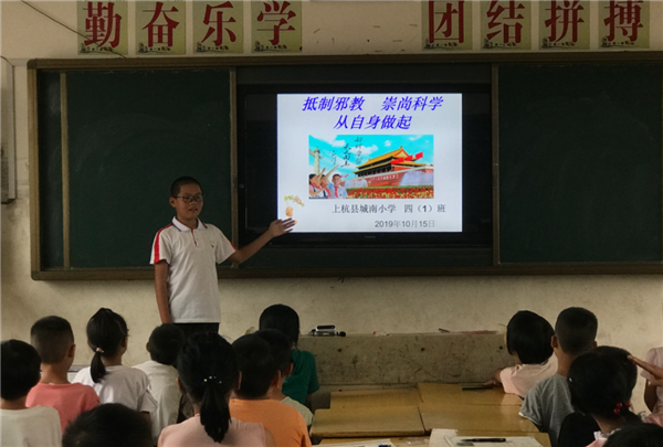 近日,上杭县城南小学深入开展“抵制邪教,崇尚科学,从自身做起”主题宣传活动。 为了有效引导全体师生抵制邪教,崇尚科学,2019年10月14日学校发出“抵制邪教,崇尚科学,从自身做起”的倡议,分管德育副校长黎桂连在倡议会上要求全体师生从我做起,不信邪教,抵制邪教的一切宣传活动;要求小手拉大手,抵制邪教一起走;充分发挥知识的力量,大力弘扬科学精神。2019年10月15日学校举行“抵制邪教,崇尚科学,从自身做起”主题中队会,会上队员们纷纷表示做到“小手拉大手,抵制邪教一起走”,努力倡导社区居民反对邪教、破除迷信、崇尚科学、传播文明,为创建全国文明城市添砖加瓦。 活动的开展,有效坚定全体师生不忘初心,牢记使命的决心,为创建全国文明城市营造了良好的氛围?。ɡ钕攘?林宏辉) |