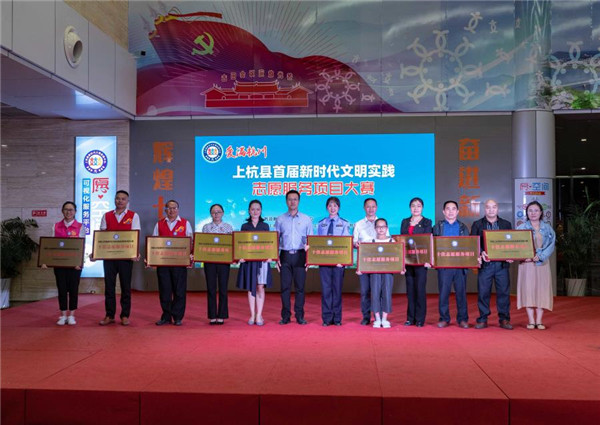 优秀志愿服务项目颁奖现场 赖锦发 摄 此次30个参赛项目按抽签顺序进行展示,涵盖了政策宣传、福利关爱、教育引导、移风易俗、生态环保、技能培训等志愿服务。项目介绍人精彩纷呈的介绍获得了评委老师的一致肯定,赢得了现场观众的阵阵热烈掌声。 项目经过现场展示、网络投票、人民满意等三项内容综合评审,评选出十佳志愿服务项目10个,优秀志愿服务项目10个,优秀组织奖10个。