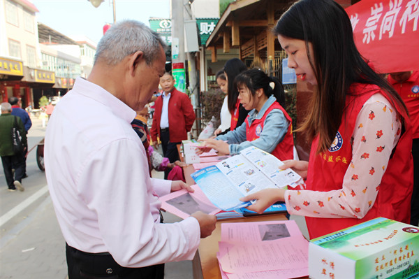 11月14日上午,蓝溪镇新时代文明实践志愿服务所联合镇宣传办、组织办、综治办、妇联等部门组织开展以“抵制邪教、崇尚科学、从自身做起”的集中宣传活动,充分利用圩天人流量大的优势,在集市设置固定宣传点,扩大宣传覆盖面。