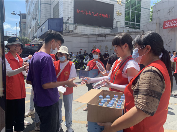 活动共发放宣传材料800余份,居民们纷纷表示,一定严格遵守规定,积极配合做好高考期间的各项工作。 7月7日一大早,参加活动的志愿者们准时来到考点附近,搬桌子,摆放水,忙得不亦乐乎。志愿者们主动热情地为即将进场的考生和送考的家长送去免费矿泉水,在炎炎夏日里为他们送去一份及时的清凉与关爱。
