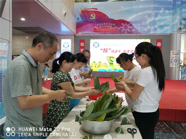 活动中,老师从花材选择、修剪、美学构造等细致讲解,大家边学边做,互相交流,用自己灵巧的双手,将原本普普通通的花草,修剪、整枝,再根据不同的色彩、形状整合到一起,一幅幅独具匠心饱含深意的插花作品展现在大家眼前。 传承文明活动 为弘扬中华优秀传统文化,让全体干部度过一个充实有意义的端午节,端午期间,上杭县委文明办开展了以“粽”情端午、传承文明为主题的端午包粽子活动。 活动中,大家纷纷大展身手,各显神通,争分夺秒的放米、卷叶、扎捆,相互交流包粽子的方法和技巧,体验着制作美食的快乐。不一会,一片片飘香的粽叶、一粒粒晶莹的糯米、一颗颗鲜艳的红豆,在大家的巧手中变成了诱人的粽子。 此次活动的开展不仅传承了中华民族优秀文化,弘扬了自力更生、勤劳勇敢的美好品德,更丰富了干部们的业余生活,增强了大家的凝聚力。 诵读经典活动
