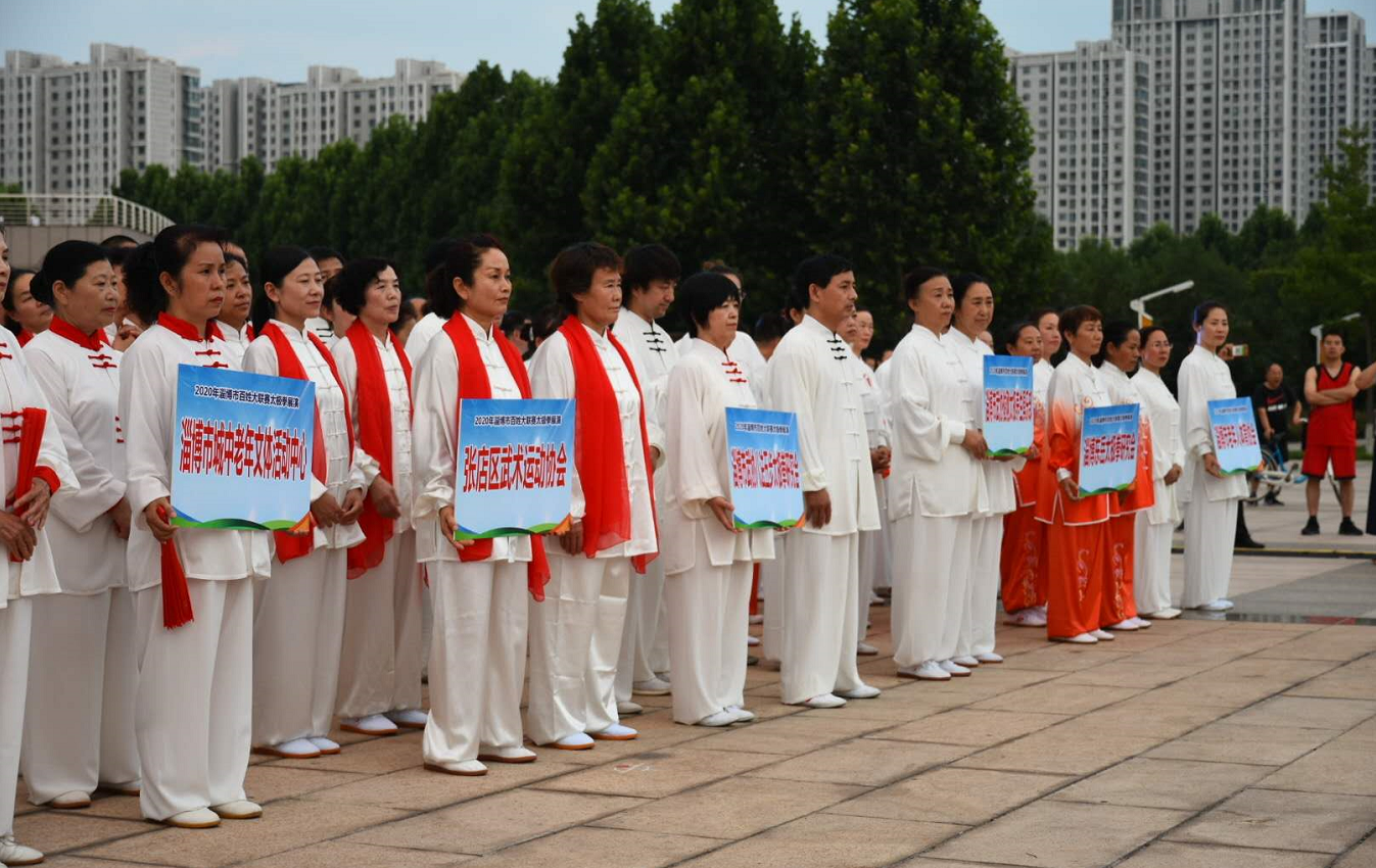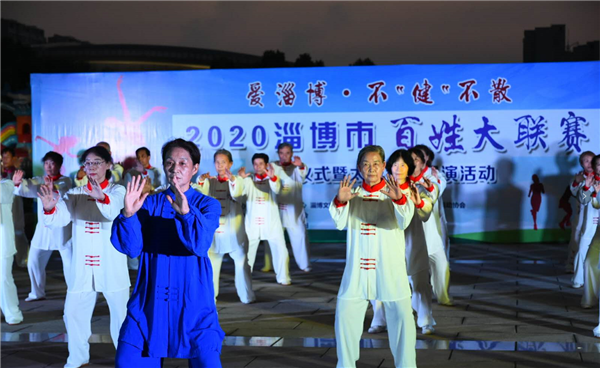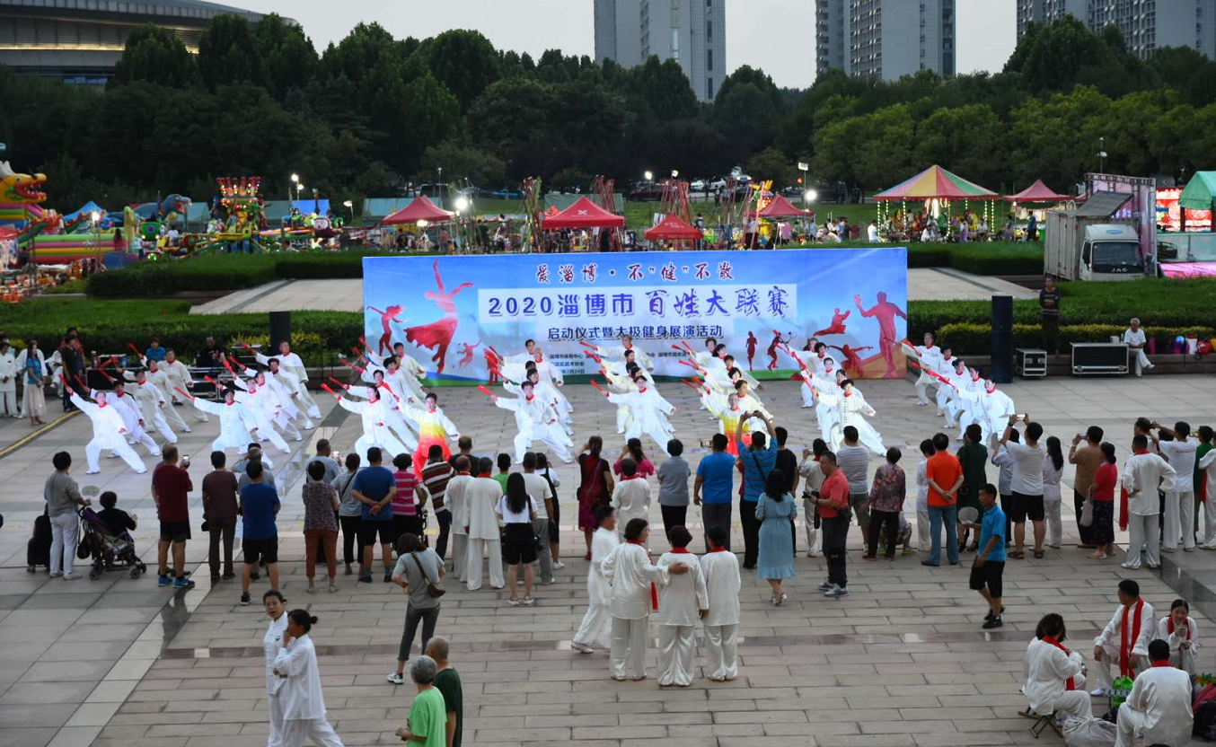7月24日晚,由山东淄博文明网与淄博市体育中心联合举办的“爱淄博·不‘健’不散”2020年淄博市百姓大联赛启动仪式暨太极展演活动在市体育中心全民健身广场隆重举行。为响应淄博市委、市政府发展夜间经济丰富百姓生活的号召,主办方还专门推出了“夏季夜间百姓大联赛”,举办武术、广场舞、足球、篮球、乒乓球、夜跑、轮滑等一系列群众喜闻乐见的体育赛事,深化文明城市创建,推动全民健身运动发展。 此次活动是贯彻落实全民健身国家战略,推动全民健身活动深入开展的一项重要举措,同时也是淄博文明网“爱淄博·不‘健’不散”网络文明传播活动的线下活动,得到了市民热捧。不少志愿者在网上看到招募信息后积极报名参与,到现场提供服务,让人民群众更好地享受到体育带来的健康快乐和文明生活。 花式太极 呈现一场健身饕餮盛宴 启动仪式上,来自全市的太极爱好者进行太极八法五步、太极功夫扇、东岳太极拳、24式简化太极拳等太极展演,为现场观众带来了一场视觉上的饕餮盛宴。