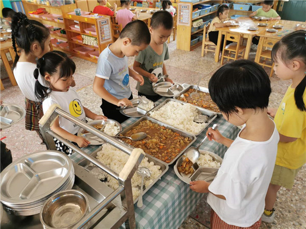 全校老师通过寓教于乐的活动方式让幼儿了解粮食对人类的重要性,让他们明白“一粥一饭,来之不易”的道理,从而培养幼儿的节约行为和习惯,懂得节约粮食,从我做起。 光盘行动 我有妙招 ![]() ![]() 通过多种方式鼓励幼儿们做到光盘行动。妙招一:自主取餐,鼓励幼儿们吃饭时吃多少盛多少,以吃饱为准,不扔剩饭剩菜。吃光碗里的最后一粒米,盘中的最后一棵菜。妙招二:光盘请亮灯,每个班级都设有一小块“光盘亮灯区”,孩子们在用餐时如果做到光盘,没有浪费粮食,就可以率先按亮自己名字下面的小灯。妙招三:光盘小管家,通过幼儿之间的相互监督,让每天光盘第一名的小朋友担任光盘小管家,检查大家是否做到光盘。妙招四:家园联动,将光盘进行到底,家园携手,让节约成为一种习惯,让“光盘”成为一种荣耀。 ![]() 亲身实践 感知珍惜 带领孩子进行劳动体验,让孩子在劳动中明白一餐一饭都来之不易,从而更加懂地珍惜,形成节约、不再浪费食物的意识。