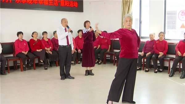 10月23日,禾康智慧养老举办“重温激情燃烧岁月,乐享晚年幸福生活”活动,与老年人一同度过重阳欢乐时光。在活动中,老年朋友们纷纷展示自己的学习才艺,大合唱《没有共产党就没有新中国》、歌舞《浪漫夕阳》、广场舞《三生石上一滴泪》《稻花香》《敬你一碗青稞酒》等节目精彩纷呈,展现了老年朋友积极向上的精神面貌。 县老年大学: 走进金秋老年公寓 进行慰问演出