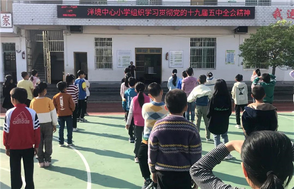 泮境中心小学组织全体师生学习“党的十九届五中全会精神”。