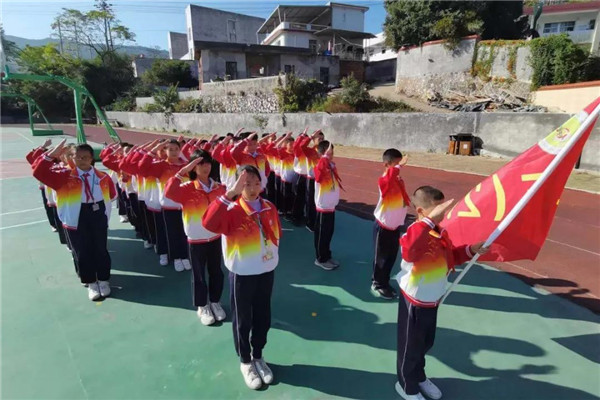 溪口中心小学开展“红领巾看全会——学习党的十九届五中全会精神”主题队课,在升旗仪式下“点赞'十三五‘伟大成就’,展望‘十四五’美好蓝图”。