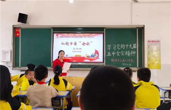 古田中心小学开展“红领巾看全会——学习党的十九届五中全会精神”主题队课。