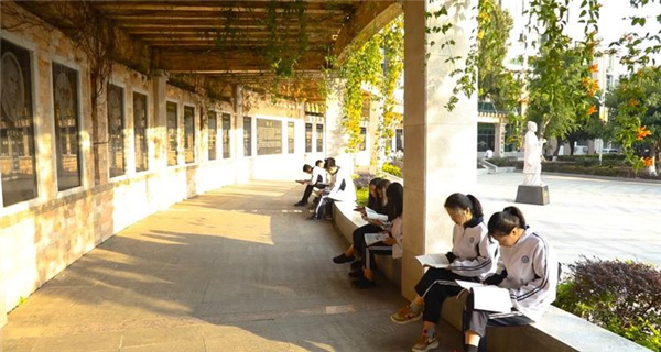 初春的鲁班文化广场 2.净化绿化校园网络,发展活跃社团组织 建立了校园绿色网室,为学生提供健康、安全、文明上网环境;建立了校园网络平台和微信公众号,内容定期更新。团支部、学生会、社团联合会有专门活动场所,设施设备齐全,50多个社团活动主题鲜明,内容丰富,形式多样。 四、加强教师队伍建设,打造德育工作团队 1.加强师德师风建设,塑造良好师表形象 学校把“让社会满意、让家长放心,让学生成才,让教师成功”作为新时期对教师的新要求。教育广大教师遵守《福建省中小学教师职业道德准则》,增强教书育人的社会使命感,开展“不忘初心 牢记使命”主题教育等活动。制定师德量化考核方案。三年来,全校教职工无任何违法违纪现象,无侵害学生权益事件。 2.落实奖惩完善考评,组织培训促进教研 学校建立健全师德考评制度、专业教师到企业实践制度;加强对教师尤其是青年教师的培养和培训,组织优秀班主任、教师骨干和学校管理人员到北京、杭州和广州等地培训学习。三年来,老师参加省级教育教学比赛获奖近60人次,在CN级刊物发表60多篇论文,目前有国家级课题1个,省级课题11个,市级课题7个,县级课题30多个。工会每年组织教职工定期体检,年底关心慰问家庭困难教职工和退休老教师,完善公租房设施设备。 3.建设思政育人体系,构建德育育人网络 学校在以“思政课程”为主,推动习近平新时代中国特色社会主义思想和社会主义核心价值观进教材进课堂进头脑的基础上,着力要求各学科和技能实训中能结合学科内容和特点渗透立德树人内容。在强化班主任德育工作能力建设的基础上,树立全体教职工人人都是育人者的观念,并形成全员帮扶教育的“三挂钩”育人制度,打造一个有效的德育工作团队。 五、完善校园文化规划,提升特色文化品牌 1. 打造特色校园文化,优化学校育人环境 我校在建设“三引入”校园文化的基础上提炼出了以“墨斗文化”为核心的校园文化,优化?;铡⑿8琛⑿Q?,对校园广场、道路、楼道、宣传栏等进行重新规划设计,增建墨香书院和墨斗亭。整个校园具有浓厚的墨香氛围,墨斗文化激励着我校师生积极进取、奋发向上。2019年以“墨斗文化”为特色的校园文化建设案例,被省教育厅推荐申报全国职业教育文化建设优秀案例。 2.培育特色校园活动,打造精品常规活动 “墨斗文化”以活动文化建设为平台,把中华优秀传统文化、闽西上杭红色文化、“建筑之乡”建筑企业文化引入校园。学校定期举办职业技能周、读书月、校园文化艺术节等活动;每年开展经典诵读、爱国歌曲传唱、?;つ盖缀拥戎魈饣疃?;开展大课间体育活动,每年举办一次运动会。结合网络安全教育周活动开展主题班会,宣传电信网络安全知识,签订防范电信网络诈骗活动承诺书,组织收看网络安全教育法治视频,提高学生网络安全间谍和文明上网素养。 学校充分利用好重要节庆点,开展文化活动。如为庆祝新中国成立70周年而组织师生拍摄快闪《我和我的祖国》,改革开放40周年图片展、邮品展,纪念抗美援朝作战70周年影片展,烈士纪念日祭奠活动等;结合40周年校庆,开展“匠心筑梦,砥砺前行”系列活动;每年元旦开展墨香系列文艺活动。 六、综治安全持续平稳,校园环境优雅美丽 校园内古木参天,绿草如茵,环境整洁优美,人文景观布局合理。每学期开展生态环保教育,定期举办环保知识讲座和知识竞赛,学生环保意识强。每年均拨专项资金绿化、美化校园,校园绿化覆盖面达40 %以上,是省级“绿色学?!?。 学校实现安全监控无死角,目前校内有300多个安全探头,监控网络与教育局、公安局联网,设置一健报警系统;每学期开展各类安全防范教育活动10多场,法治报告会不少于3次,禁毒教育不少于3次。实行教官制管理,全面加强校园安全管理。完善安全保卫工作领导责任制和责任追究制。 由总务处副主任专门负责校园食品安全管理,值日学校督查、值周行政必须在学生食堂用餐。健全校园食品安全溯源体系。加强食品安全宣传教育,在食堂和医务室门口增设LED屏,及时宣传疫情防控知识和传染病预防知识,培养文明健康生活习惯。每学期开展生态环保教育和节粮、节水、节电教育,广播站宣传垃圾分类知识。