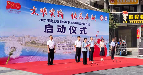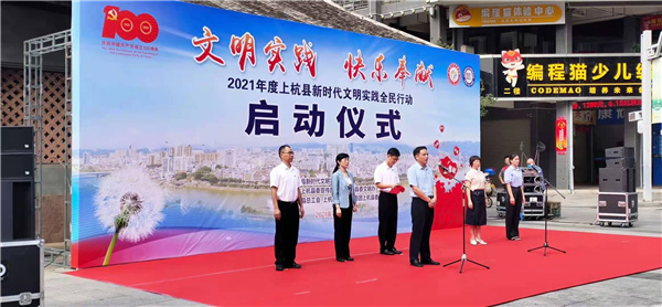 为培育和践行社会主义核心价值观,进一步传递社会正能量,培育社会新风尚,推动党史学习教育、“我为群众办实事”活动与新时代文明实践系列活动深度融合,全面展示上杭县三年来新时代文明实践建设成果,让全县各级各界广泛深入参与到新时代文明实践中来,7月6日上午,“文明实践 快乐奉献”2021年度上杭县新时代文明实践全民行动启动仪式在城区瓦子街广场举行,县委常委王尧华参加活动。