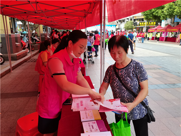县委文明办主任、县新时代文明实践中心办公室副主任邱永南讲话 活动现场,上杭县新时代文明实践中心建设领导小组成员单位和6个志愿者协会组成的22支志愿服务队,150余名志愿者在各服务点开展了党史学习教育宣讲、心肺复苏技能培训、创城知识宣传、清静车厢宣传、疫情防控、移风易俗、妇女权益保障、残疾人政策优惠、法律咨询等各类特色鲜明、形式多样的新时代文明实践志愿服务活动。县卫健局、县美容美发行业协会为群众提供了义诊、测量血压、免费理发等有温度的志愿服务,受到居民群众的一致好评。