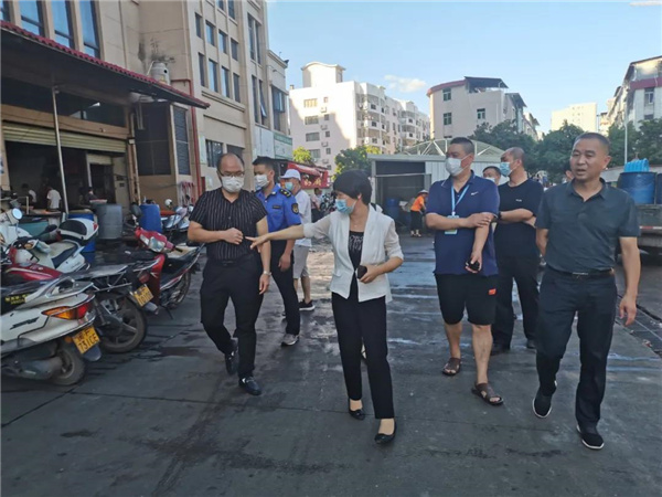 7月8日下午,上杭县委常委、宣传部部长蓝玉华带领县委文明办,县创城办、县城市管理局、县工信科技局、县公安交警大队、县消防救援大队,临江镇、临城镇等单位负责人前往城区实地测评点开展第七届全国文明城市创建实地督导。