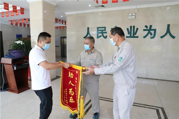 9月17日一大早,国网上杭县供电公司的门卫给办公室打去电话问:“曾崇鉴、郭寿瑞有在公司吗?有位黄先生给他俩送来一面锦旗!” 原来是9月1日上午,上杭县供电公司庐丰乡供电所所长曾崇鉴、党支部副书记郭寿瑞驾车前往茶地镇政府对接工作事宜,行驶至613县道时,发现一辆受损摩托车横卧在道路旁的水沟中,一名大妈满脸是血地倒在边上,口中喃喃“救命”二字,并向他们车辆缓缓招手。 曾崇鉴、郭寿瑞急忙停车查看,慢慢扶起大妈,只见她的眼角处破了一个大口子,鲜血正缓缓涌出,被扶起后大妈颤抖地说出一句话:“只有...只有...你们停车...救我”。 一问才知道,大妈姓温,原本驾驶摩托车从庐丰乡前往位于茶地镇的娘家,由于之前干了重农活,加之天气炎热导致出现突发中暑昏厥,连人带车翻倒在路边,自己也重重摔倒,磕破了手脚多处地方,眼角的大口子就是被路边尖锐的石头割破,自己也失去意识。
