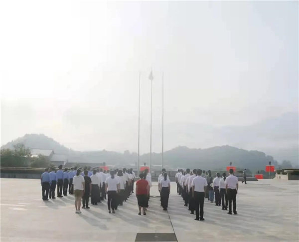 10月1日上午,古田镇干部群众举行国庆升国旗仪式,并合唱歌曲《我和我的祖国》,表达对祖国的无限热爱和忠诚。 文明单位庆国庆