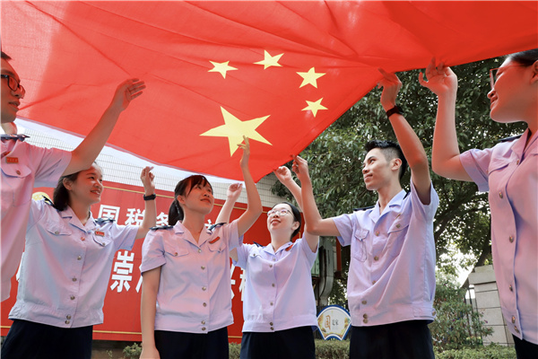 国家税务总局上杭县税务局青年干部开展“我和国旗合个影,我为祖国送祝?!被疃拔窀刹坑牍齑匆夂嫌?,心向国旗,坚定信念,为祖国送上祝福,祝愿祖国母亲生日快乐,国泰民安,繁荣昌盛。 文明校园庆国庆