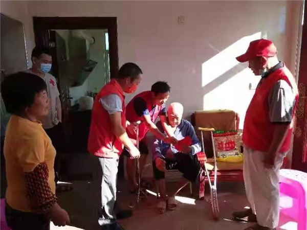 慰问101岁老人王兴松 每到一处,义工们都与他们热情交谈,关心老人们的身体、饮食、起居等方面情况,并送上了节日的祝福和问候。