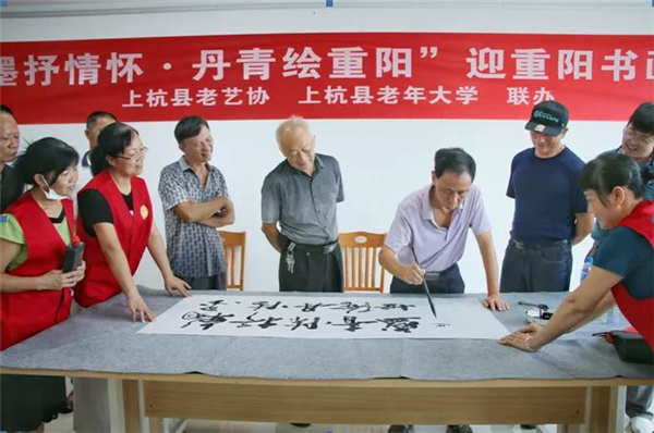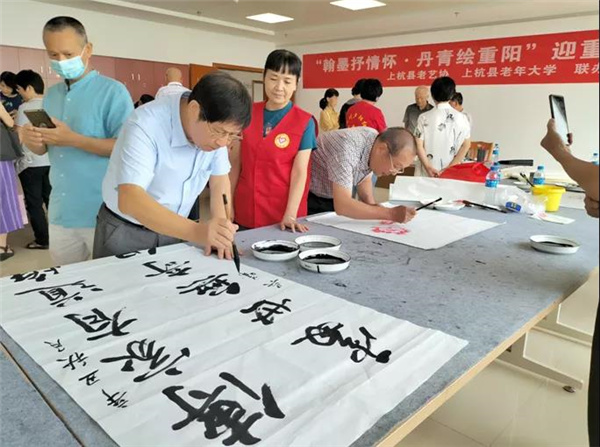 在九九重阳节到来之际,上杭县老年大学与龙岩市老年书画艺术协会上杭分会,在县老年大学六楼书画室联合举办“翰墨抒情怀、丹青绘重阳”迎重阳书画笔会。县老艺协的会员和老年大学书画班师生近60人参加了笔会活动。