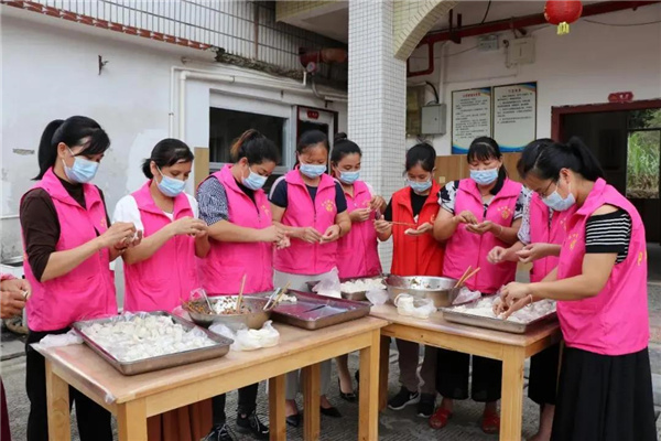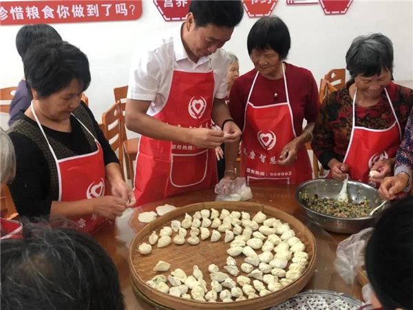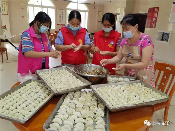 在活动会场,老年大学文艺轻骑兵为老人表演丰富多彩的文艺节目,舞蹈、歌唱、葫芦丝轮番上演,让老人们沉浸在精彩的表演中,欢乐的氛围让老人感受到家庭般的温暖。在老人餐厅,社区志愿者拿出看家绝活,利索地拿捏饺子皮,各种样式的饺子竞相出镜,形态不一,各具特色,有元宝形状、馄饨形状等,老人们赞不绝口! 蛟洋镇 10月12日,蛟洋镇新时代文明实践所的志愿者与义工志愿者、金铜业熔炼厂志愿者一同走进蛟洋敬老院,为孤寡老人送温暖。