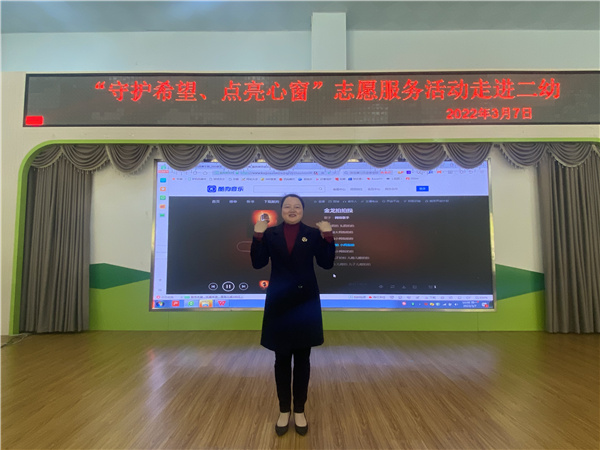 在“三八”国际妇女节来临之际,为了提高教师自身健康水平,促进教师心理健康,构建和谐校园。3月7日,“守护希望·点亮心窗”心理健康志愿服务走进第二实验幼儿园。国家二级心理咨询师、上杭“舒心”心理健康辅导志愿者、县委统战部侨务股负责人罗晓琼受邀前往第二实验幼儿园,为全体教职工开展“怀阳光心态、做健康教师”心理健康专题讲座。