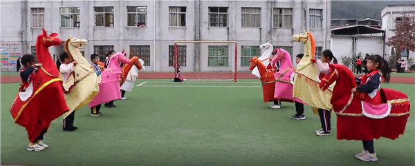 红色故事课堂 以《红色白砂》《白砂记忆》等本土书籍及红色影片作为主教材,让孩子们充分的了解上杭历史、白砂历史,通过定期举办演讲比赛,让孩子们成为红色故事宣讲的小能手,进一步提升他们的爱国爱乡情怀。除此之外,还开展了象棋、五子棋、书法、绘画、木偶等课程,丰富孩子们的校园生活。 民俗文化的传承园 每周二的下午,溪口镇乡村“复兴少年宫”都会上演一场特色民俗表演“走马灯”。只见孩子们跃“马”奔来,分立两侧,在亢奋激昂的乐声中,马儿腾挪有序,有乐感,有美感。