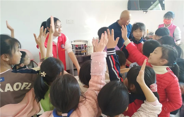 生活小课堂 “面粉倒进盆中,加入适量的水,混合均匀,做到手光盆光,等到发酵后,我们在把它切成大小的剂子,揉搓成长方体...... ”这是白砂乡村“复兴少年宫”中老师在给孩子们上生活课,通过开展生活课堂,让孩子们了解白砂镇传统小吃白砂饼子和日常生活小吃馒头、饺子等的制作过程,掌握洗菜、炒菜等基本生活技能,切实感受劳动的艰辛和乐趣。