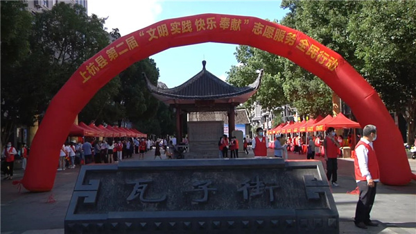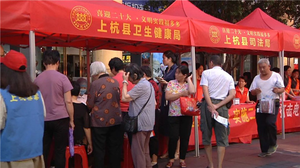7月8日上午,由上杭县新时代文明实践中心主办的“喜迎二十大 文明实践福多多”暨上杭县第二届“文明实践 快乐奉献”志愿服务全民行动在瓦子街举行。