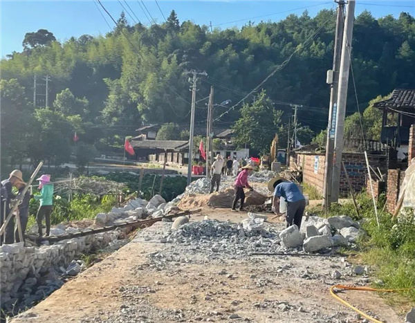 连日来,骄阳似火,热浪袭人。在上杭县蛟洋镇蛟洋村大礼堂至红军医院道路拓宽工程施工现场,施工机械在轰鸣声中运转,工人们在道路上挥汗奋战,现场一片繁忙。