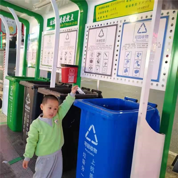 2022年3月,上杭县第二实验幼儿园开展“垃圾分类”主题教育活动 (三)发挥专业优势,献力社区共建 我园积极组织教师走进社区与孩子互动,为家长提供育儿指导、赠送家中育儿专刊等,开展“亲子教育进社区”等志愿者服务活动。组织教师、幼儿参与健康有益的校外活动,开展“亲子教育进社区”等志愿者服务活动。三年来开展志愿服务共36次,教师共参加志愿服务350余人次。在结对帮扶志愿服务中,我园积极与通贤东里幼儿园、岭头幼儿园、中心园分园3所农村结对帮扶园进行园所管理、环境创设、课程指导、教研活动、捐赠设备等全方位精准帮扶。 二、思想道德之花——推进道德实践,强化文明教育 我园注重塑造幼儿良好的行为习惯、道德品质,对幼儿进行礼仪启蒙教育、良好行为习惯以及道德品质的养成。通过“我学、我讲、我议、我选、我行”为主要形式,围绕“四德”组织开展一系主题教育实践活动。 (一)寓教于乐,培育核心价值观 布置与校园整体环境相融合的社会主义核心价值观宣传内容 。充分利用校园墙体、楼道、国旗下讲话、电子屏、微信等多种形式进行全方位,多角度宣传;通过评优评先、志愿服务、扫黑除恶宣传活动、“健步行 洁家园”活动、“童心接力,爱心传递”捐赠活动、集中活动——《防欺诈》《防性侵》《垃圾分类》科学开展多样的文化活动,突出社会主义核心价值观又体现趣味性,寓教于乐,让幼儿在喜闻乐见的校园文化中全面确立社会主义核心价值观。 (二)优化德育制度,榜样激励催人奋进 幼儿园建立表彰激励制度,按照国家相关规定配足配齐教职工,开展评优评先活动三年来通过评选“著名苏区好老师”、评选最美妈妈、最美女儿、最美儿媳、评选园师德标兵、幼儿园优秀教师等、通过表彰优秀,鼓励进步,发挥典型示范和榜样激励作用,营造良好的教育舆论氛围。 (三)拓展德育内涵,民族传承势在必行 我园重视发挥一日活动中的德育主渠道作用,将德育工作有机融入各项活动之中,全面实施德育教育。 1.充分利用重要节庆日、民族传统节日,组织开展丰富多彩的文体活动,开展道德启蒙主题教育,引导孩子“扣好人生第一粒扣子”。我园结合传统节日、德育主题开展园本特色活动。利用传统节日,如:元宵节、清明节、端午节等,开展元宵灯展、清明扫墓、包粽子等活动让幼儿在了解我国传统节日文化的同时,体验活动带来的乐趣。结合“三爱”——爱学习、爱劳动、爱祖国教育活动,教育幼儿从身边做起,从小事做起,好好学习,练好本领,用自己的力量为祖国为社会服务。 2.健全完善幼儿行为规范,加强文明礼仪教育,将德育渗透于幼儿一日活动之中,积极开展“讲文明、树新风”系列活动,形成常态化教育??菇诹浮⒔谒?、节电宣传教育实践活动,推广“三节”师生环保意识和节约意识强,五破坏和浪费现象。