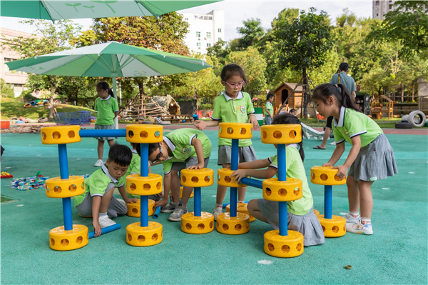 2022年5月,上杭县第二实验幼儿园开展“户外合作建构比赛” 三、教师队伍之花——强抓师德师风建设 打造优质教师团队 倡导教师为人师表、以“爱国、敬业、诚信、友善”为核心,努力建设一支师德高尚、业务精湛、行为世范、廉洁从教的人民满意的教师队伍。 (一)优化师德师风,优秀团队德能兼备 1.定期开展政治学习。我园把“师德师风”建设与“文明校园”创建工作相结合,开展师德主题活动,净化教师的心灵。幼儿园高度重视教师的思想政治教育,师德教育,定期开展幼儿园政治学习、年段政治学习活动,不断加大师德师风教育力度,共同营造和谐的师生关系,树立良好的职业道德风尚。 2.开展系列师德教育活动?!坝萌艘圆?,动人以德”,在幼儿园管理中,上杭第二实幼以师德建设为龙头,构建文明教师队伍。确保师德师风落到实处,幼儿园成立了以分管副园长为组长的师德师风领导小组,修订完善了系列规章制度,规范了教师行为。三年来围绕社会主义核心价值观的主要内容开展师德主题教育、师德主题宣传培训、教师节重温“爱岗敬业,廉洁从教”誓词、签署师德承诺书、师德师风演讲比赛、好家风家训故事征集等系列活动。邀请全国道德模范温金娥、心理咨询师林盛等为全园教职工作专题讲座,通过丰富多彩的系列活动,全面提升教师的师德素养。 (二)精心搭建成长平台,教师专业成长显著 1.加强教师业务培训。优秀的教师队伍,是保障幼儿园教育教学质量的重要因素。幼儿园贯彻落实《幼儿园教育指导纲要》《3~6岁儿童学习与发展指南》精神,先后选派教师赴上海、南京、深圳、广州、厦门、蒲江等地进行业务学习。通过在职进修、专家指导、师徒结对、多位提升等一系列创新举措,引领教师不断提高理论素养和实践能力。开展主题环境创设、非在编教师培训、基于问题的自然角、混龄户外运动自主游戏、岗位练兵、教师技能大赛等活动不断提高本园教师的专业素养。 2.深化教育科研,办园特色日益凸显 以课题促教研,以教研促课改,张春萍园长领军教研团队,制定并落实学年教师园本培训规划, 构建“幼儿园大课题—年段小课题—教师小专题”三级研究网络,实现“人人有参与,个个有研究”态势,构建学习共同体。幼儿园以保教改革建设幼儿园“课程改革建设”为抓手,着力“三丫生长”园本课程,初步形成丫丫文化的办园特色。 (三)加强人文关怀,凝聚团队力量 关注教职工心理健康,邀请心理咨询师来园做心理健康辅导;开展送温暖活动。每年给教师送生日蛋糕,教师家有喜事送去真诚的祝福,定期组织教师体检,寄托学校的关怀,教师逢病患,领导亲自慰问。每年一次的团队拓展训练,趣味运动会、瑜伽健身等活动。做到以事业凝聚人心,用榜样振奋人心,用感情温暖人心,创设团结友爱、温馨和谐、同心同德的教师团队。 四、育人环境之花——完善育人环境,文明校园杭城飘香 第二实幼占地面积约9150平方米,建筑面积5620平方米,户外活动场地2274平方米,绿化覆盖面将近40%。,幼儿园环境凸显“精致化、特色化”,公共区域不仅突出区域风格和专属功能,更展示了园所文化传承、发展、教育的成果,使校园环境成为校园特色文化的载体,将特色教学内容贯穿于幼儿园的整体环境营造特色教育氛围。 (一)设立目标愿景,校园文化建设显山露水 1.改善校园环境是第二实验幼儿园推进精神文明建设的一项主要抓手。我园以“绿化、净化、亮化、美化”为目标,两年间投入90万元,对全园环境分区域、按楼层进行设计,绿色草坪、攀爬树屋、沙池、农场、小型足球场等户外环创项目。除了室外的设施,校园内部的教学及生活设备也在逐年更新,办园条件不断完善。 2.走廊、楼道是我们的重要传播途径,安全教育、爱的教育、中国风、家乡文化等隐形教育窗口随处可见。达到“十有”:有园牌,有国旗,有标语,有园训,有宣传栏,有画廊,有绿地,有办公室文化环境,有教室文化环境,有师生文化及卫生环境。让师生在工作、学习、生活中接受先进文化的熏陶和文明风尚的感染,陶冶情操。 (二)重视爱国爱乡,客家文化校园飘香。 我园十分重视客家文化的传承与整合,通过多年的实践探索我园积极开发节日资源,把节日庆?;疃显谟锥爸魈饨逃鸵帐跆厣疃?,让幼儿深刻认识节日的传统文化习俗,切切实实体会节日的特殊意义,增进幼儿爱家乡爱祖国的情感,感受传统节日的文化魅力。三年来我们开展了“三八”感恩、清明网上祭扫、“英雄人物”电影展、端午节亲子乐、“七一”童心向党歌咏比赛、“优秀童谣”传唱、木偶进校园、中秋赏月做月饼、重阳节祖孙乐、民俗文化节等一系列深入人心的社会主义核心价值观主题教育活动。
