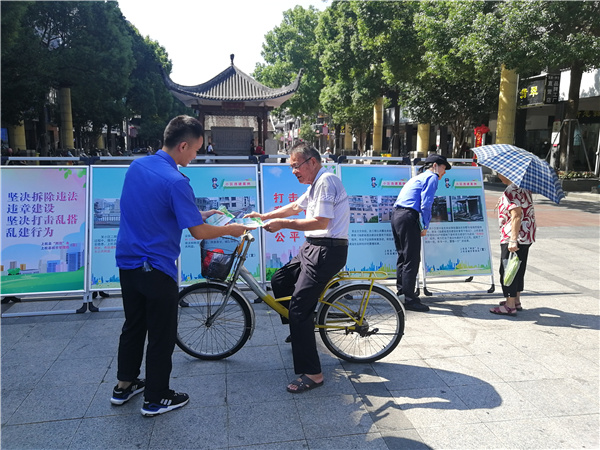 为进一步深化“两违”综合治理工作,不断提升治违工作成效。上杭县结合工作实际,开展“无违建”示范点创建活动,打造“六个达标”无违建示范点样板,并以点带面,全面推进“两违”专项整治行动, 构建常态长效机制, 提升城市治理效能。9月15日,上杭县城市管理局土地和规划监察大队组织执法人员深入临城镇城东社区东方花园小区、杭鑫汇景小区及临江镇瓦子街广场,开展“你我共建,幸福小区”为主题的“无违建小区”宣传活动,致力加快推进上杭县“无违建小区”创建工作,提升城市品味,打造干净整洁、优美舒适、文明和谐的生活居住环境。