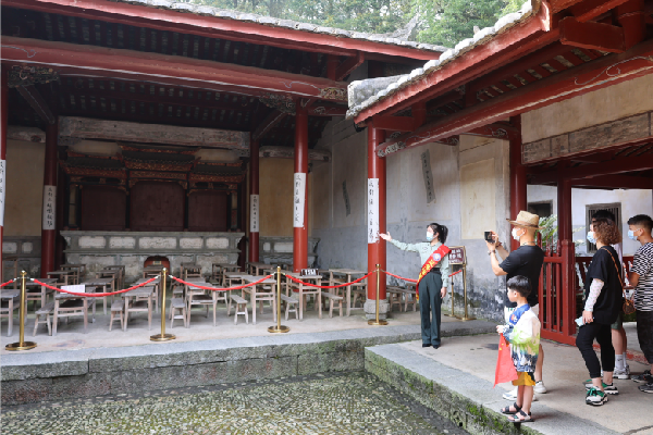 2022年7月15日上午,古田镇红色基因传承志愿服务者在古田会议旧址为游客讲解红色历史(拍摄者郭莉) 通过“红色圣地·百姓舞台”“乡村大舞台”等,丰富发展传统文艺表演,搭建文化互动交流平台,丰富群众文化生活,营造文明、和谐的文化氛围。文明是社会进步的标志,也是古田发展的追求,我们将凝聚群众、引导群众、以文化人、成风化俗,共建共享美好家园。(文明福建) |