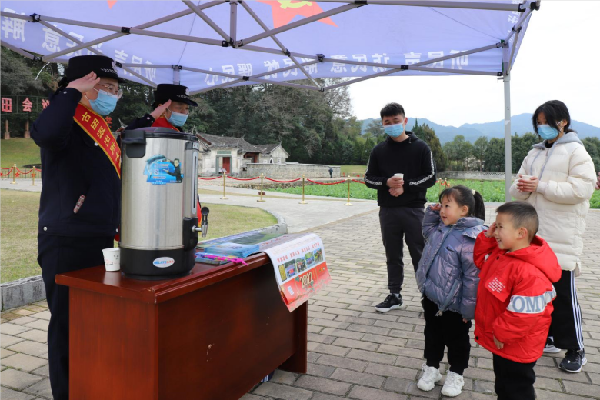2022年春节期间,古田镇派出所女警巡逻志愿者在古田会议旧址提供便民茶水(拍摄者李颖) “情暖古田 巾帼当先” ——红土巾帼志愿服务项目 红土巾帼志愿服务项目是由32支红土巾帼志愿服务分队主动承担起开展清洁家园、爱心帮扶、禁毒防艾、卫生保健、文化宣传、家庭教育、法律维权等活动。