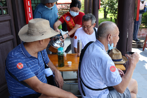 2022年7月13日,古田镇乡风文明志愿者在慈善茶屋为过往游客提供免费茶水(拍摄者郭莉) “情暖古田 薪火传承” ——红色基因传承志愿服务项目 红色基因传承志愿服务项目主要组建义务讲解队,到景区为游客讲解景区红色历史;成立垃圾分类宣讲团,通过深入群众开展政策理论宣讲,推进垃圾分类,传承红色基因,传承文明之美。古田镇以公益积分为工作载体,以精神鼓励和物资奖励为工作手段,在五龙村和竹岭村建设“红古田爱心超市”,及时发现村民生活和工作的闪光点,表扬好人好事,形成正能量,营造善和美的良好氛围。