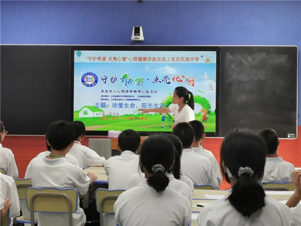 为了贯彻落实《中华人民共和国未成年人?;しā罚?倡导“追求生命意义,实现生命价值,活出生命之美”的理念,发挥上杭县心理健康林盛名师工作室的引领、示范和辐射作用,9月22日,上杭县未成年人心理健康辅导中心联合上杭县心理健康林盛名师工作室到官庄民族中学开展送教送培活动,上杭县“舒心”心理辅导志愿者、林盛名师工作室成员及官庄民族中学师生参与?;疃凑铡?+1”+“1”(名师工作室教师与乡村学校教师“1+1”心理健康课的同课异构和一场心理素质拓展的活动)模式,分同课异构、素质拓展、集体评课三个环节展开。