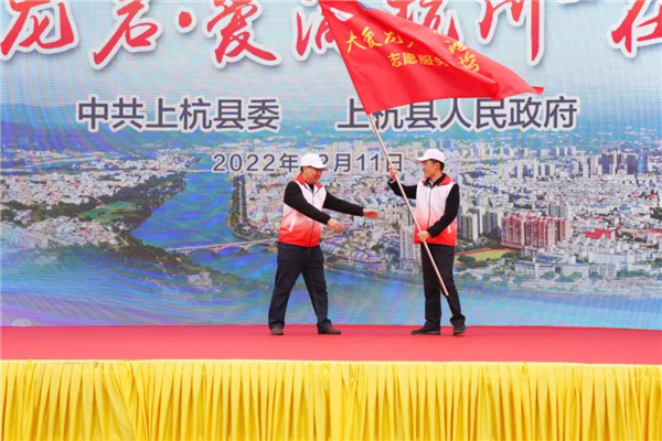 县委书记王波为“大爱龙岩·爱满杭川”志愿服务总队授旗 王波指出,近年来,我县坚持以习近平新时代中国特色社会主义思想为指导,积极培育和践行社会主义核心价值观,大力弘扬奉献、有爱、互助、进步的志愿精神,特别是2018年县新时代文明实践中心成立以来,紧紧围绕“爱满杭川”志愿服务品牌,整合资源,勇于实践,不断推进志愿服务制度化、规范化、常态化,在杭川大地营造了向上向善、德行天下的良好风尚?!霸嗣倒澹至粲嘞恪?。王波号召,希望全县人民以实际行动积极参与到“大爱龙岩·爱满杭川”活动中来,用无私奉献和热忱服务,为打造有温度的幸福上杭、打造老区苏区振兴发展县域样板作出新的更大贡献。