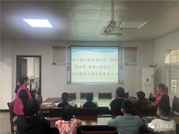 为深入学习宣传贯彻党的二十大精神,做好留守儿童和困境儿童群众的关爱帮扶,用心用情助力家庭和儿童疫情防控,帮助儿童度过一个安全、健康、祥和、温暖的假期,上杭县临江镇妇联组织社区开展“把爱带回家——暖童心护成长”2023寒假儿童关爱服务活动。