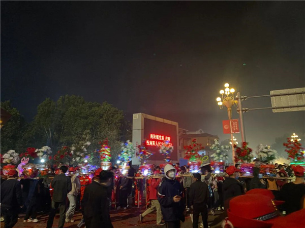 随着喜庆音乐的响起,孩子们在家长的带领下进入活动现场。猜灯谜、两人三足亲子运动等活动,不仅让孩子和家长体验到游戏的快乐,也让家长和孩子的心灵更加亲近。 活动现场,志愿者还为周边的居民分派汤圆,大家你一口我一口,热闹非凡。 南阳镇 2月4日晚,在南阳镇南坑村、射山村,乡亲们簇拥着花灯巡游在乡村街巷、田间地头,把欢乐与吉祥送给大家,祈盼一年里国泰民安,风调雨顺、福满乾坤、五谷丰登,合家平安幸福。