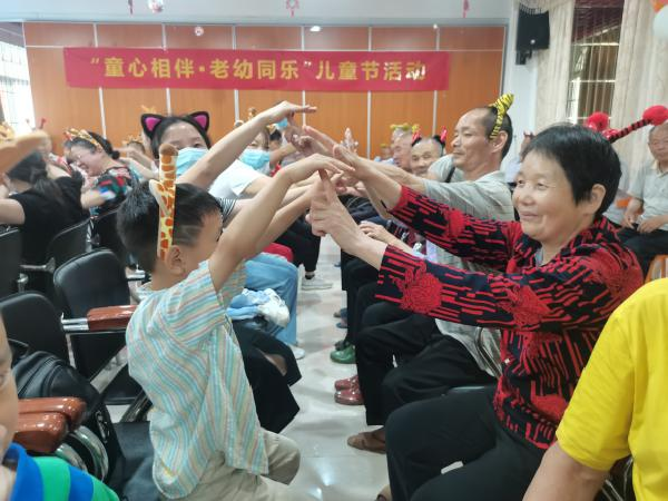 活动现场,老人和孩子们在志愿者们的引导和帮助下,全神贯注地投入到“找朋友”“抓快乐”“好运来”和“趣味画爱心”等趣味盎然的老幼互动游戏中,轻松欢快的游戏氛围,瞬间点燃现场气氛。接着,老人们还为孩子们分发了事先精心准备的糖果手工作品等礼物。