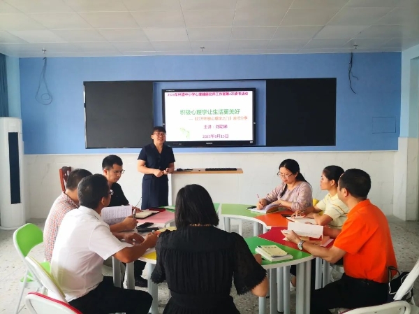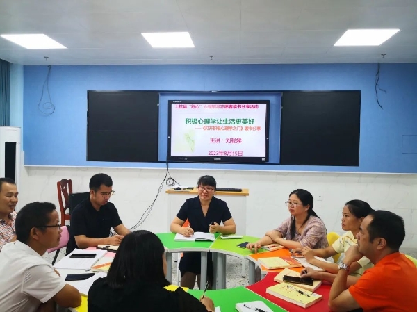 为进一步深化拓展新时代文明实践志愿服务活动内容,增强中小学心理教师积极心理素质和心理能量,8月15日,上杭县未成年人心理健康辅导中心联合县中小学心理健康林盛名师工作室在上杭一中学生发展中心开展“积极心理学让生活更美好”——《打开积极心理学之门》暑期阅读与交流专题研修活动?;疃缮虾枷匚闯赡耆诵睦斫】蹈ǖ贾行淖ㄖ案ǖ荚绷醮湘分鞒?,上杭县“舒心”心理辅导志愿者、林盛名师工作室成员及上杭一中学生发展中心成员参与。