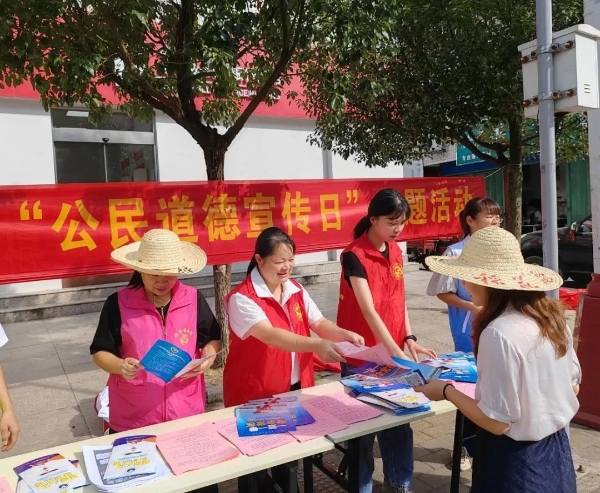 9月11日,蛟洋镇以机关周例会为契机,组织机关全体领导干部职工集中学习龙岩市入围2023年第三季度福建“身边好人”“助人为乐”候选人罗金钗的先进事迹,进一步激发大家培育良好家风、建设道德文明家庭的信心和决心。 9月14日,蛟洋镇新时代文明实践所联合镇宣传办、食安办、妇联等部门,在集镇举办以“美德养成从我做起”为主题的公民道德宣传活动。 活动现场,工作人员和志愿者通过发放宣传资料、面对面解说的形式,向居民宣传公民道德“八个不”、文明餐桌公约等的丰富内涵与意义,大力倡导和睦友爱、文明健康的生活方式,努力让“爱国敬业、明礼诚信、团结友善”的基本道德规范成为每位居民的自觉行动。 与此同时,蛟洋中心小学通过升旗仪式、主题班会、电子屏滚动播放等形式,深入开展社会主义核心价值观、“公民道德宣传日”、文明礼仪等相关知识宣传,撒播道德之种,筑牢文明根基,用讲文明守道德的火炬点亮学生的精神世界。 临江镇 9月13日,临江镇东南社区在辖区内开展“公民道德宣传日”主题宣讲活动。