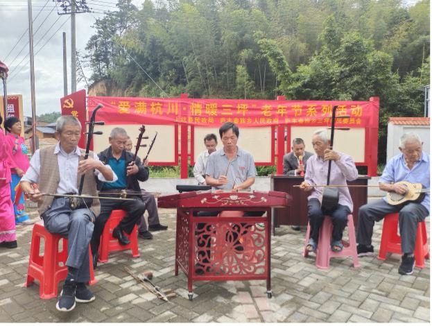 活动在三坪村村民带来的才艺表演中拉开序幕,《母亲是华》《我在茶乡等你来》......一支接着一支的舞蹈,充分展示了新时代乡村人民的精神风采和蓬勃向上的精神面貌,他们的活力和热情让老年朋友们更好地投入到接下来的活动中;紧接着的二胡、琵琶等乐器弹奏让大家在欣赏的同时,也感受到了中国传统文化的魅力;为了让更多老年朋友更好地互动和交流,参与到活动中来,志愿者们还为老人们准备了一些有趣的互动游戏,现场一片欢声笑语。