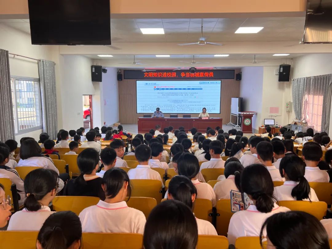 着力压紧压实文明城市创建工作责任,强化组织引领,成立以党委书记为组长、其他班子成员为副组长、相关部门负责人为成员的文明城市创建工作领导小组。在周例会上通报目标任务、工作进度,突出工作重点,坚持问题导向,推进创城问题整改,统筹全乡力量,高效推动工作落实,进一步巩固提升全乡的文明城市创建工作成果。 文明知识进校园,争当创城宣传员