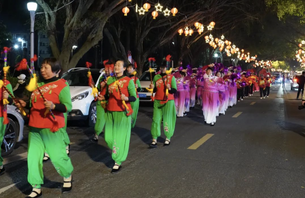 2月13日,正月初四,以“藏龙卧虎福地·福寿之乡上杭”为主题的夜间花鼓巡游活动在上杭城区举行,现场鼓声雷动,彩绸飞舞,奏响新一年的幸福生活。