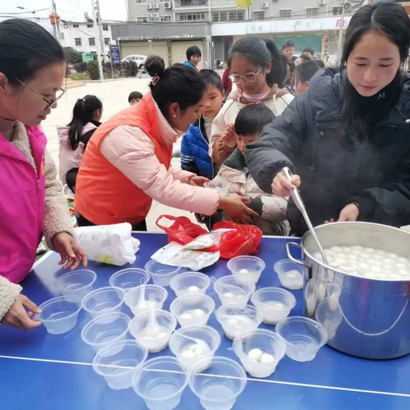 千秋万福,喜猜灯谜。红红的灯笼高高挂起,下面飘扬着谜题。在猜灯谜活动中,不仅有喜闻乐见的字谜,还有妙趣横生的俗语谜、成语谜,一条条有趣的谜语引起了广大群众浓厚的兴趣。大家互相探讨,热情高涨。 吃汤圆,过“团圆节” 幸福甜蜜品元宵。自古以来就有在元宵佳节这一天吃汤圆的习俗,取其团圆之意,象征团团圆圆、和睦幸福。洁白粉糯的汤圆在锅中热水里打着滚翻涌着,在汤圆出锅后,由志愿者为大家送上了一碗碗热气腾腾的汤圆,并送上了节日的问候与祝福,大家一起品尝着汤圆,探讨着对新年的期望。