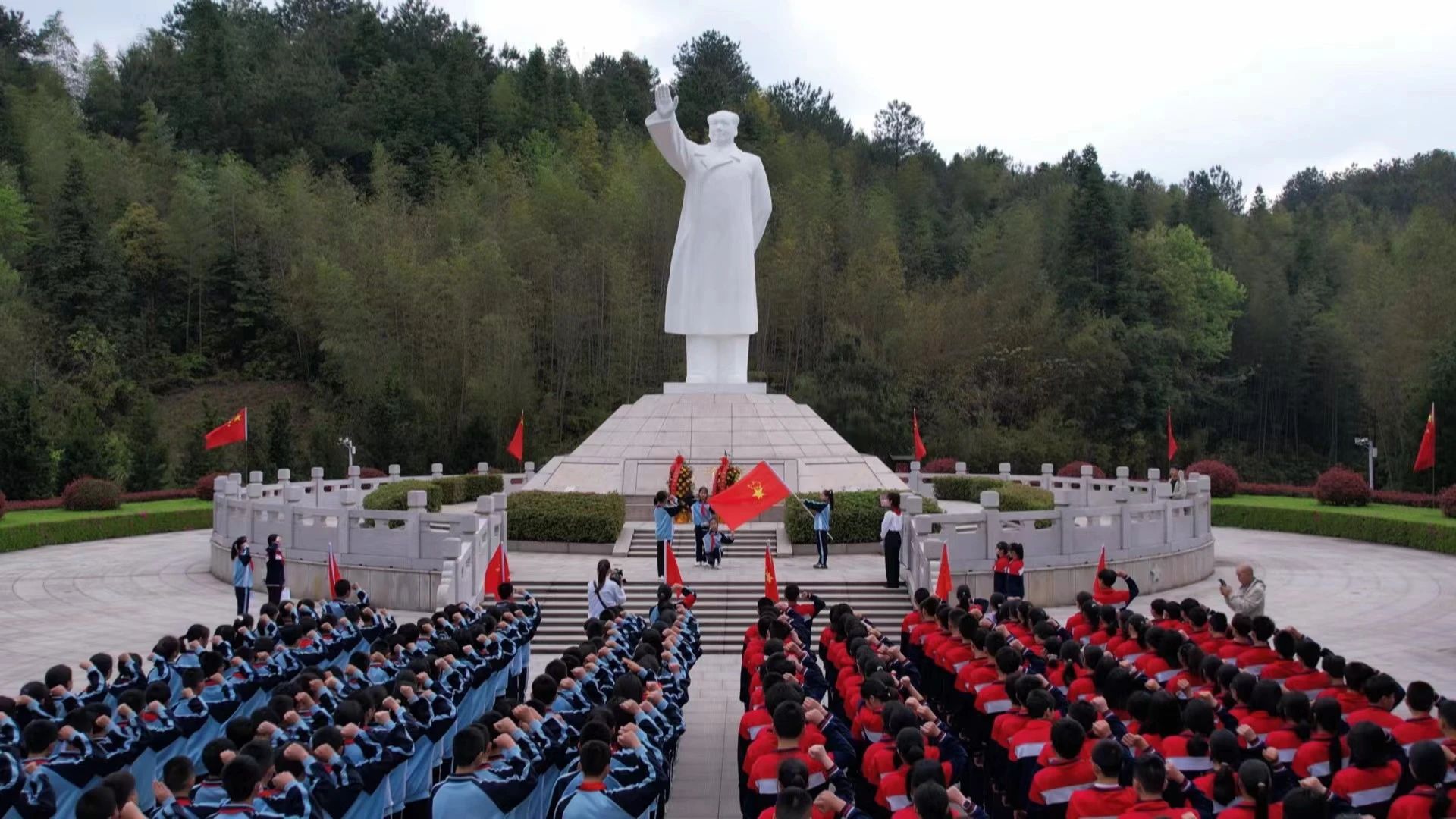 上午9时,在毛主席纪念园,270多名中小学生及教师早早来到纪念园,怀着无比崇敬的心情,在毛主席像前唱响中华人民共和国国歌和《我们是共产主义接班人》。合唱毕,师生在毛主席像前肃立默哀,少先队员献上花篮寄托哀思,并向毛主席像三鞠躬行礼,深切表达对毛主席的追思和怀念。在少先队代表的领誓下,少先队员重温入队誓词,誓言铿锵,彰显了少先队员继承和发扬革命传统的决心。 “我们今天的幸福生活是革命先烈英勇战斗,用鲜血和生命换来的?!鄙虾枷毓盘镏行男⊙а蓬诹崴担魑幻诤焱恋厣铣沙て鹄吹那嗌倌?,将继承和弘扬革命先烈的优良传统,赓续红色血脉、传承红色基因,学好知识和本领,建设美丽的祖国。 祭扫活动结束后,全体师生走进古田会议会址,在讲解员的带领下,了解革命故事和古田的发展历史,接受红色文化熏陶。 “清明祭英烈活动不仅是对英烈的纪念,也是对革命传统的继承,对英雄精神的弘扬,以及对我们民族精神的凝聚和传承。希望通过这次活动,让同学们更好地铭记历史,珍惜现在的幸福生活?!鄙虾枷毓盘镏行男⊙Ы淌苹廴偎?。