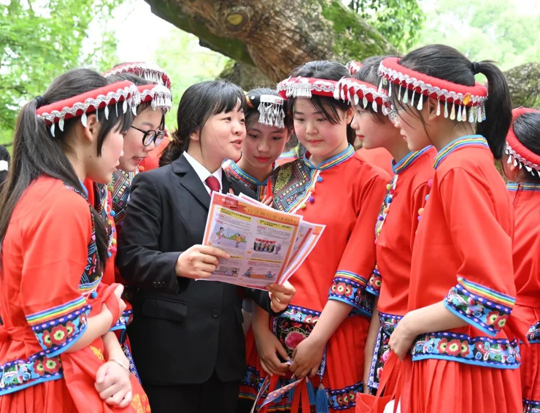 为倡导移风易俗,有效化解涉彩礼纠纷案件,形成拒绝“高价彩礼”的良好社会风气,进一步扩大《民法典》《最高人民法院关于审理涉彩礼纠纷案件适用法律若干问题的规定》中关于彩礼新规的社会普及度。上杭法院民事审判庭组织干警走进官庄畲族乡开展“法治春风沐畲乡”普法宣传活动,针对当地“高彩礼”现状,结合《规定》具体内容,就彩礼的认定范围、返还情形等热点问题向当地群众详细讲解,倡导大家树立正确的“彩礼观”,践行移风易俗,共筑文明新风。 促风俗融于“文明”