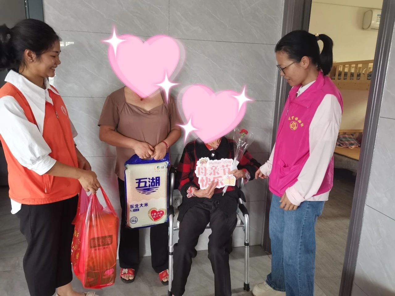 此次母亲节主题活动通过儿童“掌印画”的形式,创作一朵花送给母亲。孩子们通过“掌印画”的形式,将完成的一朵朵“花”送给妈妈,让妈妈们度过一个最幸福的母亲节。 本次“感恩母爱,温暖相伴”母亲节主题活动不仅使小朋友认识到了小手的神奇性,体会了活动的愉快感,还让小朋友们对母亲节有了更深的印象,为庐丰畲族乡社工站今后开展此类活动打下良好的基础。 通贤镇 5月11日上午,通贤镇组织妇联、民政办、社工站开展“浓情五月天·感恩母亲节”走访慰问活动,为辖区10户困难、特殊家庭的母亲送上慰问礼品和节日祝福。